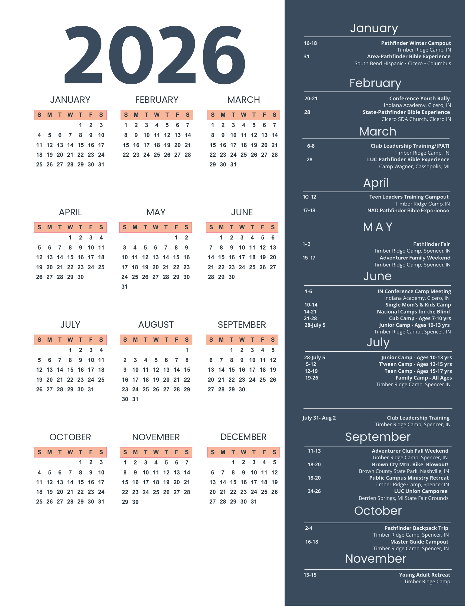 Indiana Conference Youth Department Events